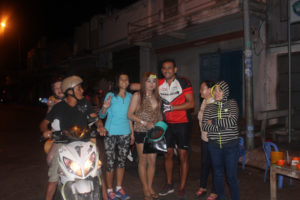 Then we arrived at a town which totally lifted our spirits with a meal on the street with this lovely lady….a few transvestites and just a jolly bunch that took our spirits into cloud 9 ????