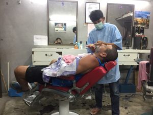 We rented another motorcycle and ran around town. Got a great dinner (fish, shrimp, calamari (2 types), clams and shells). We got lots of fruit from the festival along with chicken wings late at night which were better than the Bangkok ones!! I ended up getting a haircut and on the way to the hotel we found a Thai Takraw (volleyball / football) field. The guys playing I think would beat Ronaldinho and Zidane in their prime…. They were incredible.