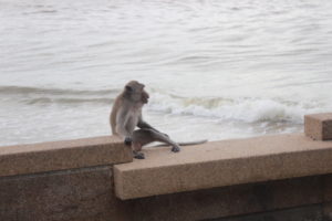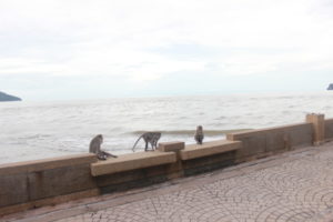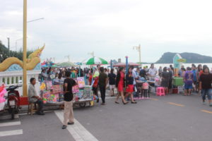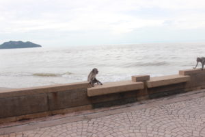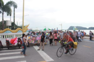As we entered the city of Prachuap; it was clear very early that this was the prettiest town we had seen thus far. As we started seeing the gulf of Thailand our spirits were immediately lifted with the breeze, the water color, the fishing boats, the beautiful town coast line along the beach (crescent beach).