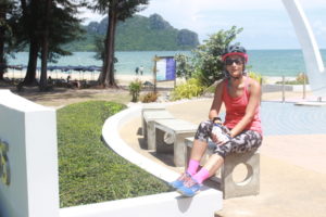 Today we had the best scenery starting out leaving Prachuap as we entered this Air force base where you are required to have a copy of your passport and sign in as you enter. The Air force base was very reminiscent of the oil and gas compound we used to live except it was right of this beautiful coast line. There were loads of Thai folks swimming, eating, drinking and enjoying the place. We had breakfast at this “outdoor” food court then hit the road.