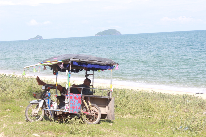 We finish the day pretty beat with 76 km’s….ended up at this very cool hotel on the beach where we had a great seafood dinner with Thai kids singing Karaoke. Today the side streets and the trails made for long cycling day with about 7 hours, or so, on the road. Wouldn’t trade it for highway cycling though Its way more fun….